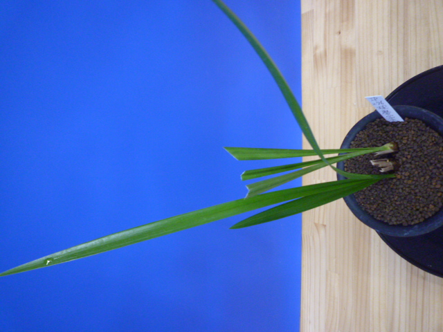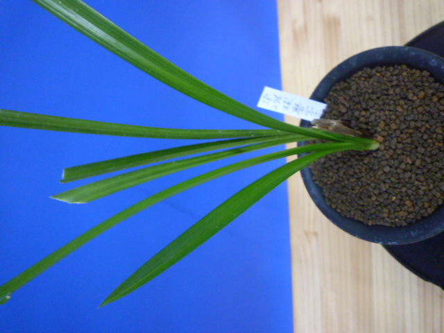 球磨富士は、熊本県産の 白花です。花軸の伸びが良く、花弁が厚く、花間も良好です。舌がしっかりしていて巻きにくく、すぐに巻いてしまうこともありません。早咲きですが花持ちが良く、長く咲かせても型崩れが少なく優秀な白花です。10月の半ば過ぎには開花する早咲きで、球磨富士が開花すると寒蘭の花時期を知らせてくれます。早く咲きますが、とても丈夫な花で2,3週間は型崩れせず長い間花を楽しめます