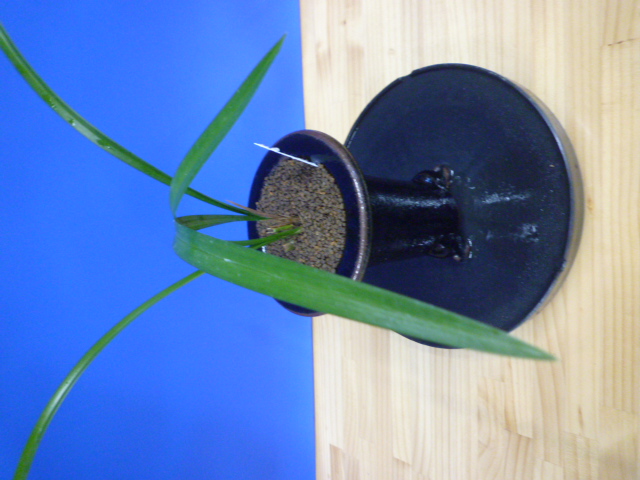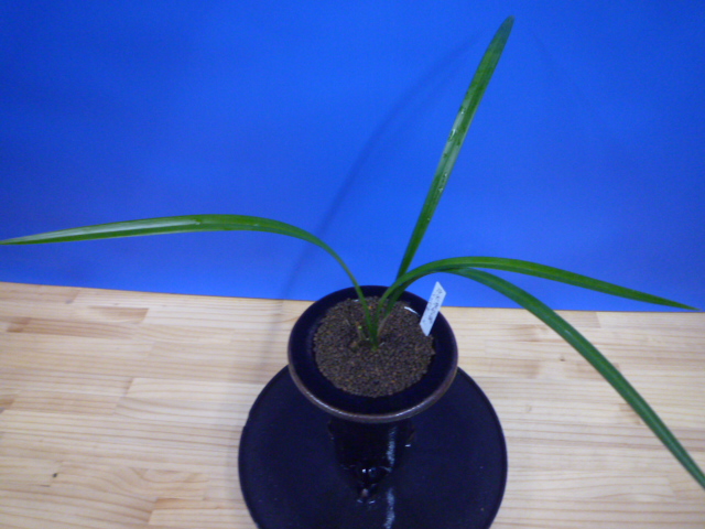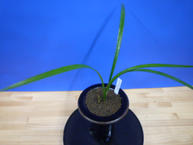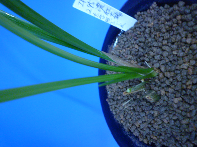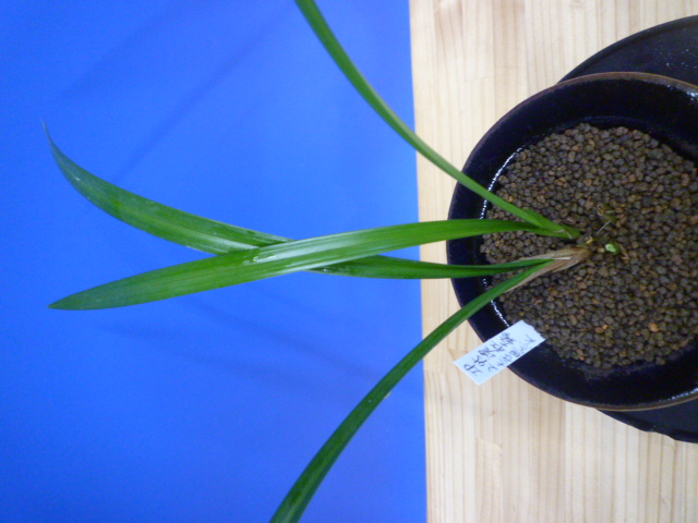 京の夢の交配から咲いた濃紅大輪大舌無点系です。発色の良い紅花で、平肩に近い三角咲きで花形も良い大輪花です。大きな舌は幅があり、無点系で魅力的です。花軸からのびる子房も長く、空間美があります。大変良い紅花ですので、これからの花を楽しみにしてください。