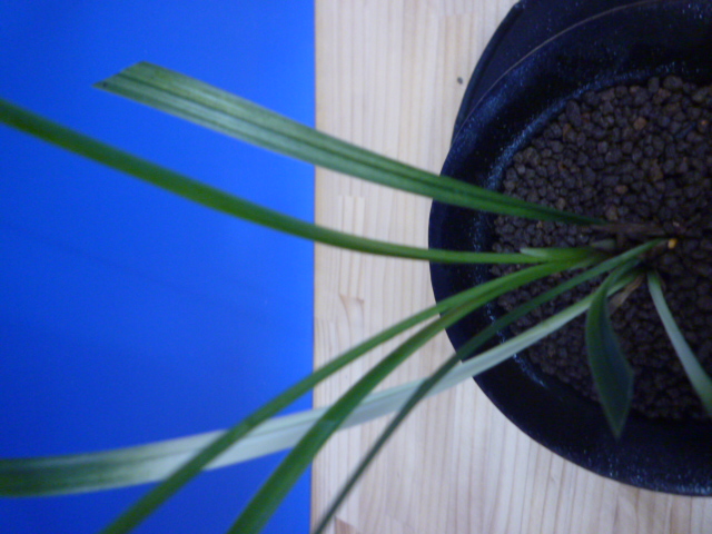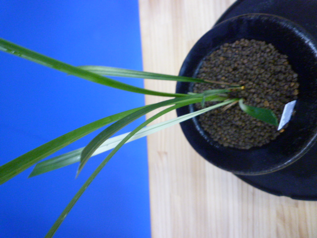 柄物の交配種から先ハケ曙の二芸品種ができました。まだ柄は安定していませんが、親木にははっきりと白い曙柄が、新木に綺麗な先ハケが出ています。これからの作できれいに柄が出していければ、葉姿と相まってとても良い柄物になっていきそうです。