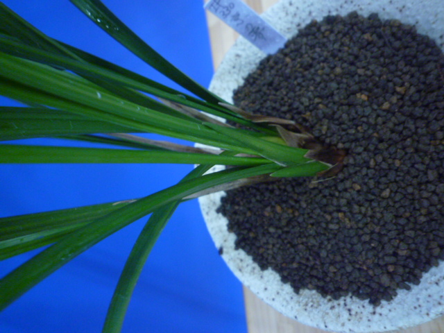 京の夢は、高知県産の三角咲きの更紗花で舌の大きな無点の花で、現代寒蘭における最高峰です。花間・花軸の伸び・花数、どれをとっても申し分ない素晴らしい花で、展示会では優勝経験が豊富で、よく大臣賞・金賞を獲得しています。これからも寒蘭界を牽引する珠玉の逸品です。