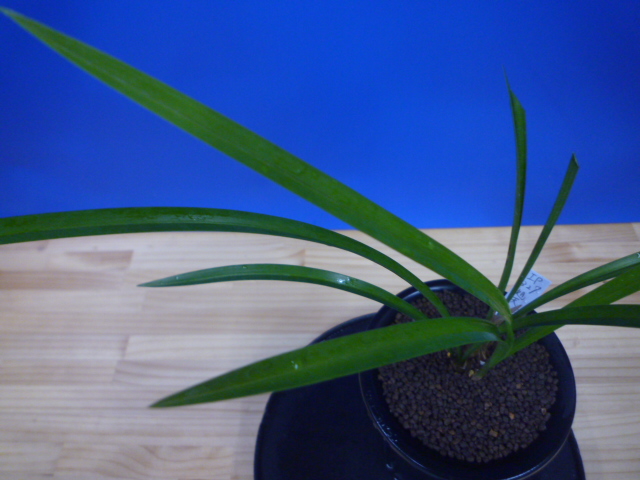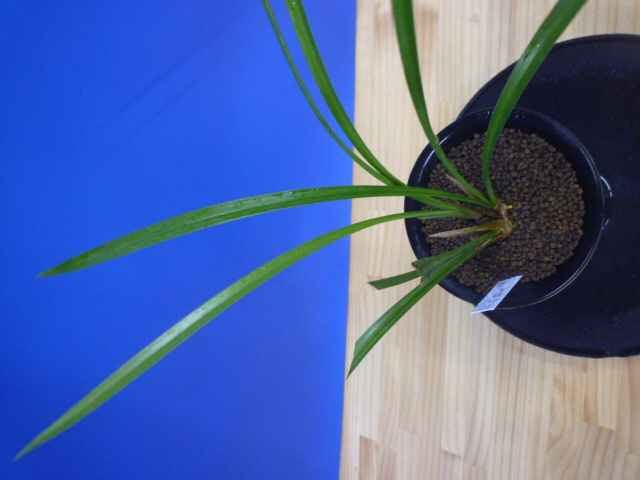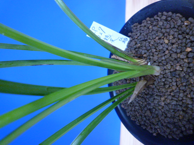 旭天は、高知県払越産の濃紅です。平成18年に日向寒蘭連合会に登録されています。花軸が伸び上がり、花間や花数が良好な払越らしい濃紅花が楽しめます。