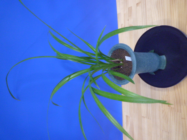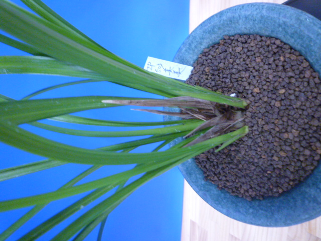 当店が宮崎県蘭協会に新登録した更紗大輪です。今までは無名の更紗大輪で出品していましたが、ここ数年花を見てきて寒蘭らしい大変良い花でしたので、美美(びび)と命名して登録しました。花型の良い更紗大輪花で、中垂れ葉から細軸がすらっと葉上に抜け上がり、大輪花でも余裕の花間をとり、花数も5輪程度で空間美があって見事です。大輪花で型崩れがなく、じっくりと花をめでることができます。