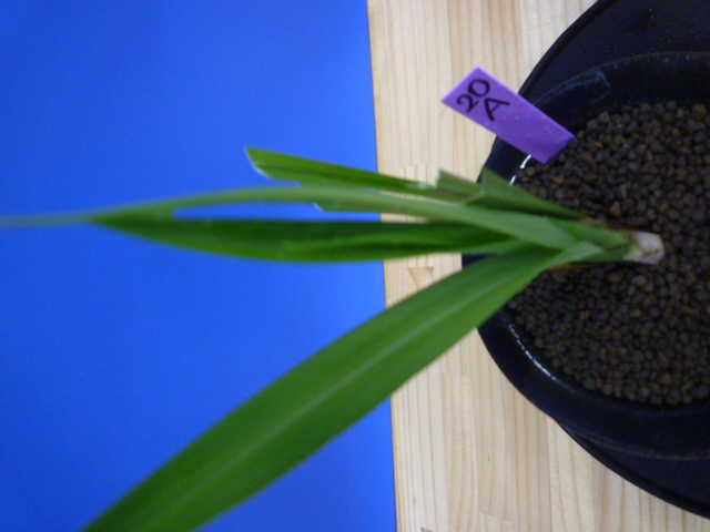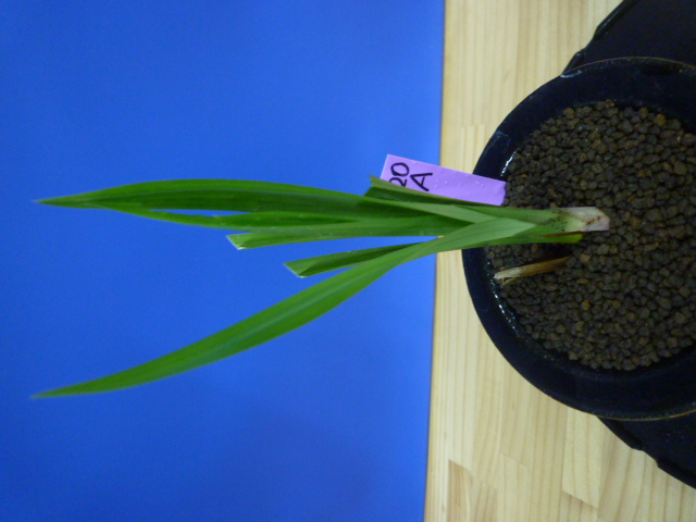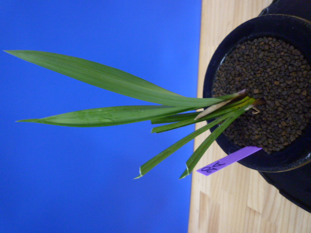 赤王は、花弁の広い黒紅で舌が丸く見ごたえのある花を咲かせます。花弁に広さがありますので、全体的にボリュームがあり、大輪花と並んでも見劣りしません。花軸の伸びが良く、葉上のしっかり花が抜け上がり、花間も良好でじっくり花が楽しめます。最近展示会に出品されることが増えてきて、注目度が高くなっている逸品です。