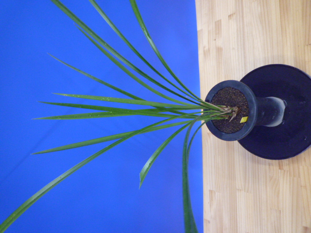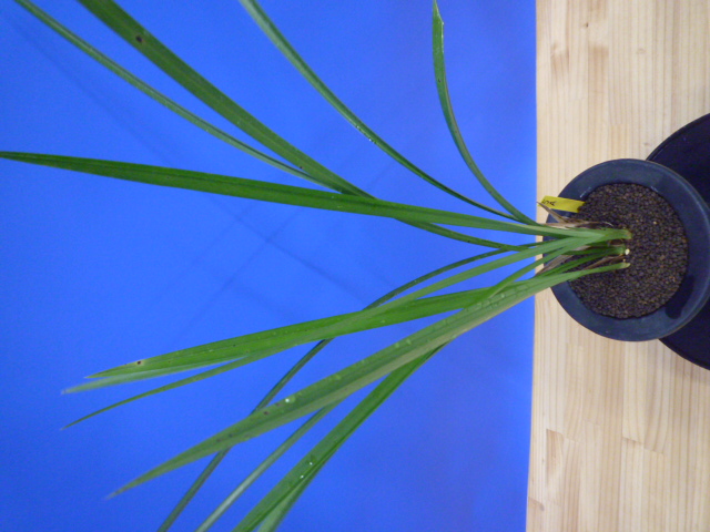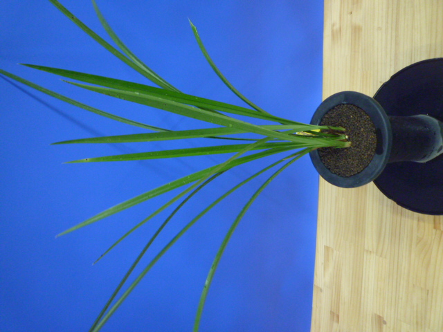 白福は、鹿児島県産の白花の素舌無点です。花弁や舌がしっかりしていて、型崩れが少なく舌も巻きにくい大変良い白花です。花軸の伸びは良いですが立ち葉ですので完全に抜け切ることは難しいですが、花間・花数の良好でバランスは良いです。昔から展示会でも大変人気が高い品種ですが、最近は数が少なく減ってきているようです。