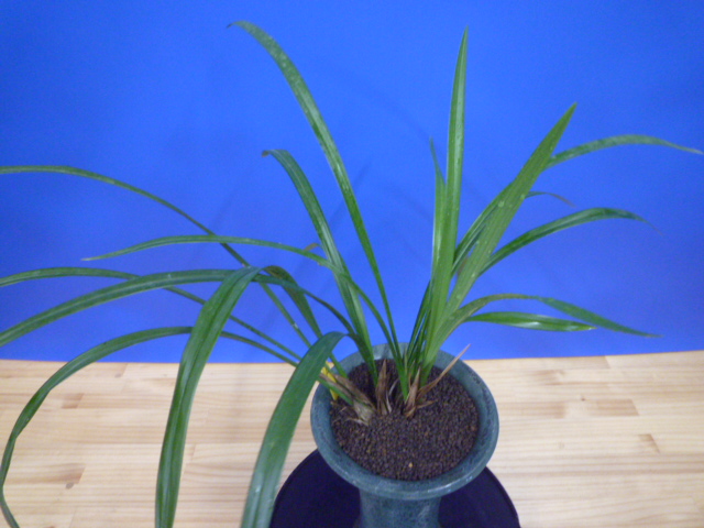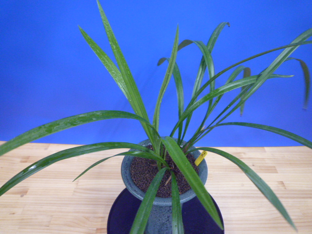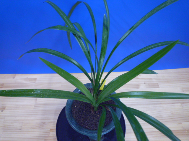 京の夢は、高知県産の三角咲きの更紗花で舌の大きな無点の花で、現代寒蘭における最高峰です。花間・花軸の伸び・花数、どれをとっても申し分ない素晴らしい花で、展示会では優勝経験が豊富で、よく大臣賞・金賞を獲得しています。これからも寒蘭界を牽引する珠玉の逸品です。