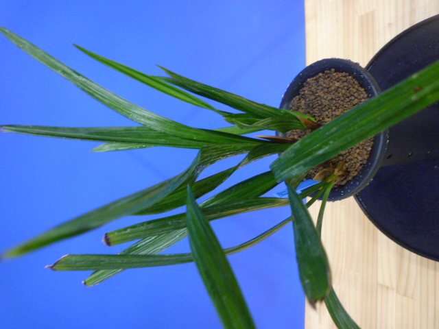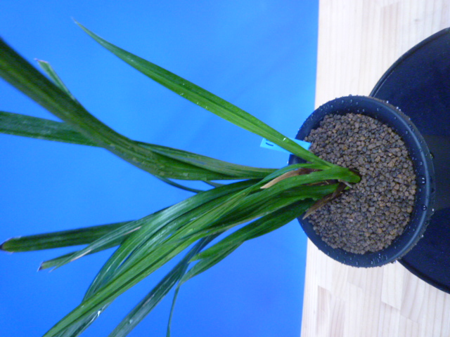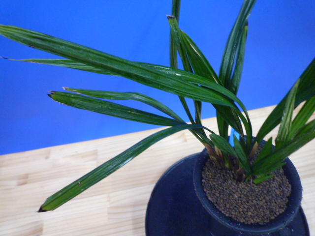 葉幅のあるガジ葉がを掛け、とても見応えがあります。葉が少し硬いので、親木に傷みも出ていますが、どんな花を咲かせるか楽しみにじっくり作ってください。根が少し茶色く出来ていますが、しっかりしているので栽培はしやすく、将来が楽しみな品種です!