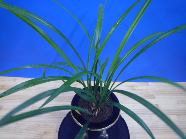 京の夢は、高知県産の三角咲きの更紗花で舌の大きな無点の花で、現代寒蘭における最高峰です。花間・花軸の伸び・花数、どれをとっても申し分ない素晴らしい花で、展示会では優勝経験が豊富で、よく大臣賞・金賞を獲得しています。これからも寒蘭界を牽引する珠玉の逸品です。