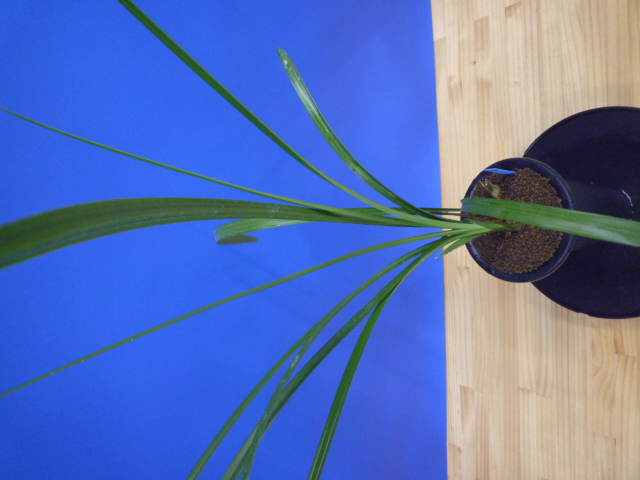 炎は、宮崎県産の紅花で無点系の大きな舌が魅力的な花です。花間もよく、腰高の中垂れ葉ですが花軸の伸びがてくれます。大きく丸い舌の無点系はとても見栄えがして良い花です。