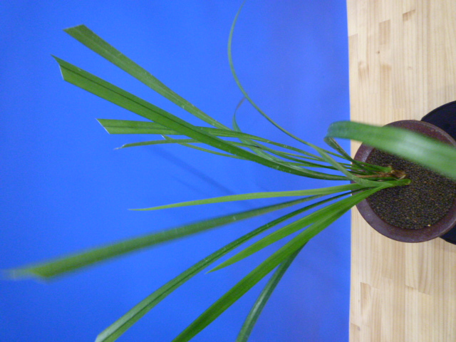 4本立の成木です。新芽が大きく伸びあがっています。新木にあまり目立たないくらいですが虫の跡があり、親木も葉切れや傷みがあります。大きな司の華はなかなか市場に出回らなくなってきましたので、ここから綺麗に作ってあげてください。根は綺麗に出来ています。白花の代表格で昔から現在でも人気の絶えない名花です。