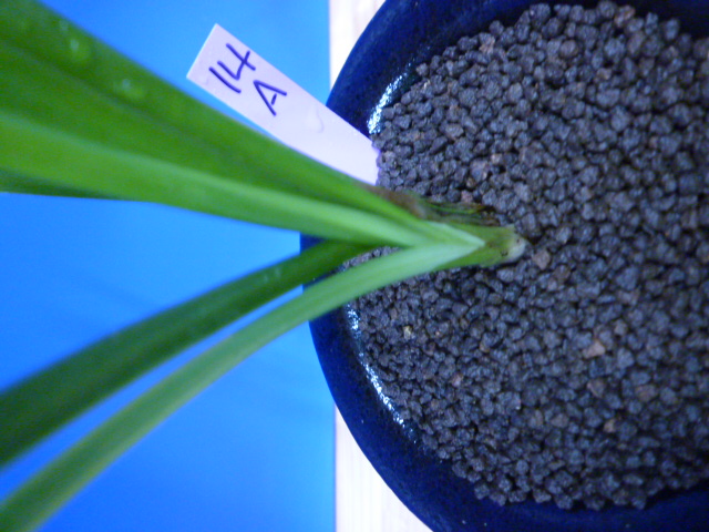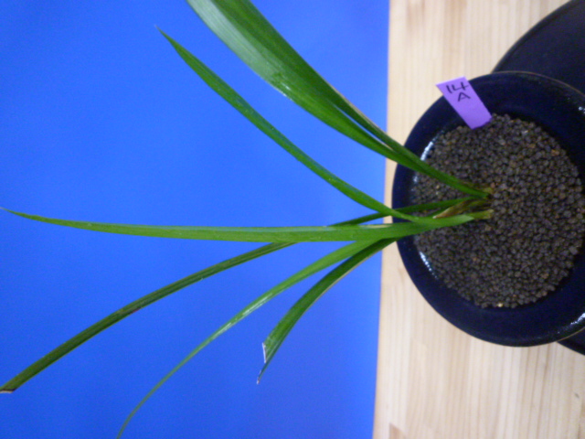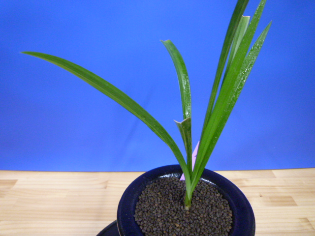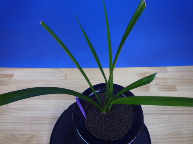 チャボ性の締まった葉で、通常の成木よりも小さい35㎝以上で成木になります。ですので小花ですが、花も抜け上がり全体的に小さくまとまりがあり、非常に色が綺麗でこれからの理想的な寒蘭像をしています。小花ですが大変色が綺麗で全体的なバランスが良く、これまでにない世界観がある花ですので、ぜひ堪能してください!!