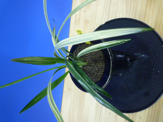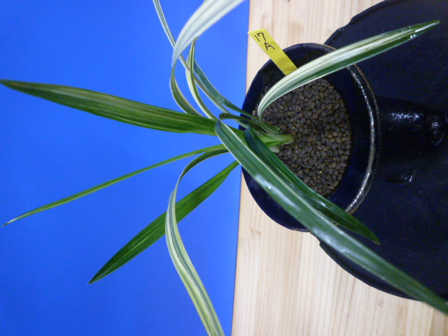 写楽は、白中斑縞の柄物です。大変見応えがあります。柄にも安定感がありそうですので、じっくり楽しめます。平成12年全国柄物連合会に登録された数の少ない品種です。
