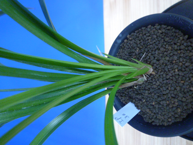 若の花は、宮崎県産の白花のチャボ咲きで、舌が短くかっちりして全体的にかわいらしい花です。ボリュームがあって迫力も兼ね備えた大変力のある名花です。花弁が厚く、舌も巻きにくいしっかりとした花を咲かせます。花軸の伸びが良く、花間・花数も良好で展示会でも活躍してくれる実力があります。これまでにも良い成績を収めてきた銘品ですが、最近では数が減ってきているようで、手に入り辛くなっています。