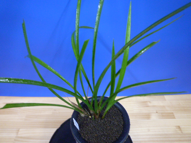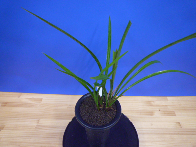 払越の濃紅大輪大舌ベタ風の特上花です。大きな濃紅花で花間が特によく、開花時には3輪でしたが均等の花間が一番上まで取れ、大変良い空間美がありました。大きな花ですが十分な花間がありますので、決して花と花が重なって混雑することなくゆっくり花を楽しめます。締まった葉肉のある硬い葉から、花軸が伸び上がり花が葉上に抜け上がり、花間良く大輪の特上花が咲く姿は圧巻です。