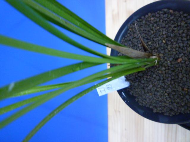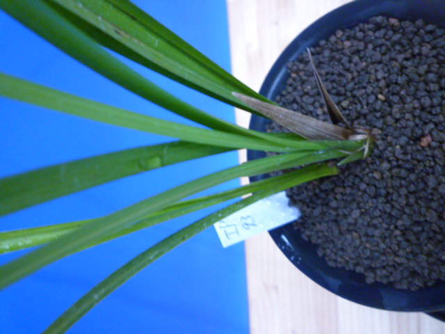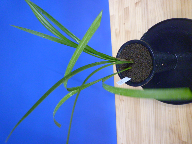 紫月は、高知県の濃紫紅色の一文字咲きの大輪です。発色が良く大変綺麗な花色をしています。平成25年度土佐愛蘭会の登録です。花は葉状にしっかりと抜け上げり、色合いの良い大輪花で、土佐愛蘭会本部展において総合優勝するなどの実績があります。