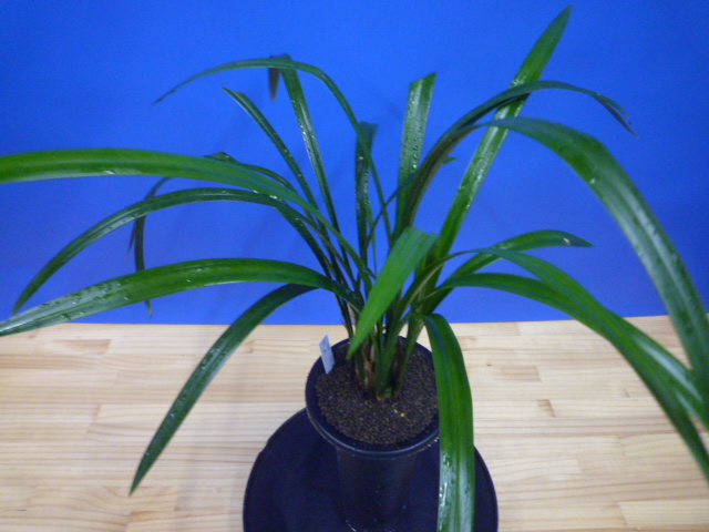 華神は、高知県産の紅花です。濃紅で舌が大きく迫力のある名花です。昭和52年に日向寒蘭連合会において登録された品種ですが、現在の展示会でも活躍する銘品です。つぼみが小さいときは青更紗で膨らんで大きくなるうちに紅色がしっかり乗ってきて開花時には濃紅に仕上がります。よりきれいな濃紅にするには、つぼみのうちにしっかり採光していくことです。