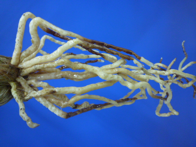 機嫌の良い3本立の成木です。根もきれいでしっかりしていています。花を咲かせるには良い株に成長してきましたので、開花を楽しみに作っていきましょう!