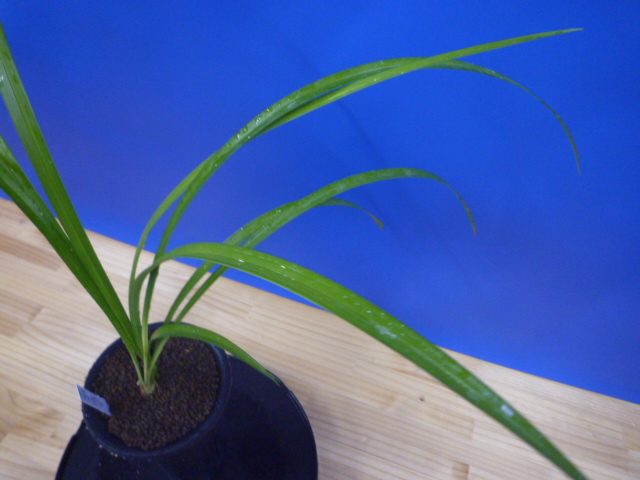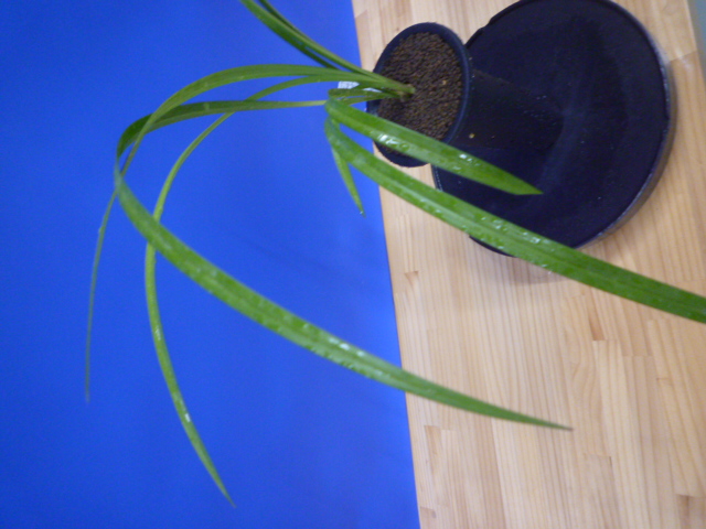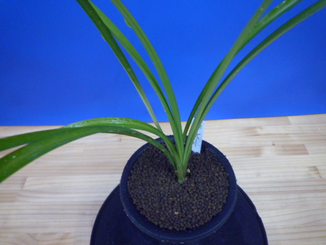 荒城の月は、高知県産の紺覆輪で花も黄色紺覆輪の大きなベタ舌系です。花軸の伸びが良く、花間をとるバランスの良い花です。展示会でも良く金賞を獲る品種で、葉芸品ながら作り易さも魅力です。新芽は紺覆輪で上がり、後にも残りますので花がない時期でも楽しめます。