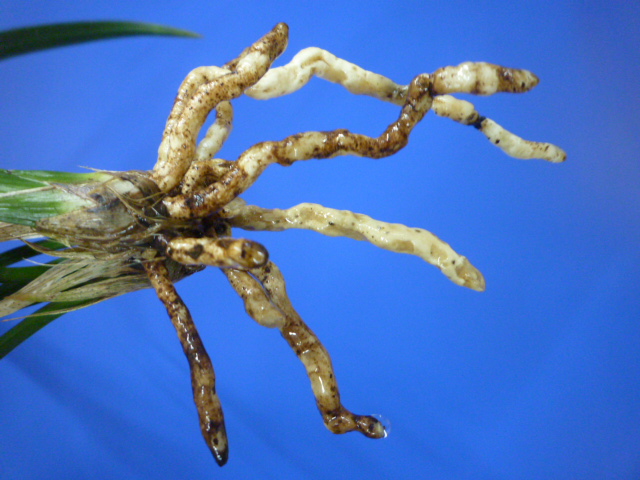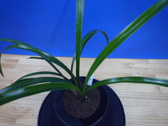 大雄は、鹿児島県産の白花素心です。花弁が厚く幅も広く、大きな舌が魅力的な白花の代名詞です。雄大な花で、見るものを魅了して現在でも多く方に愛されています。花を見ると、やっぱり大雄の花はいいと、納得できる名品です。花弁が厚い花は大変迫力があり、展示会でも良く金賞を獲る人気実力ともに充実した品種です。