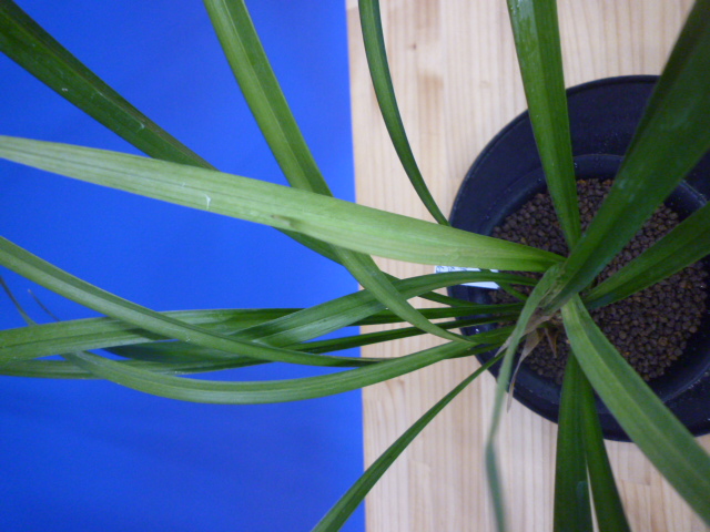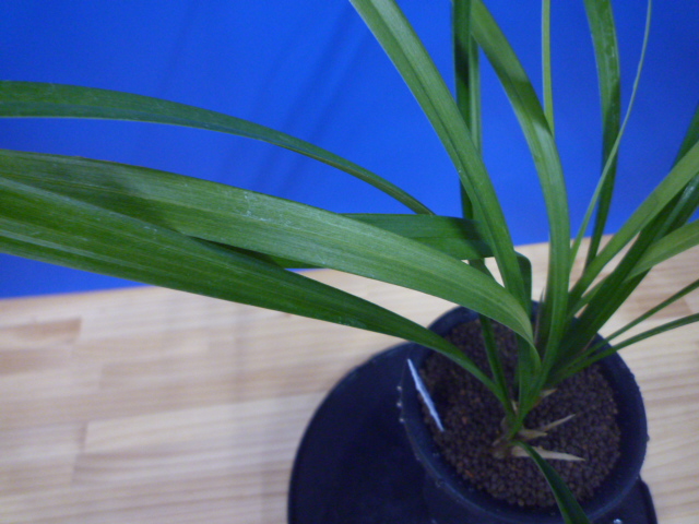 無名の斑縞です。派手に出来上がるタイプではないのかもしれませんが、新木には柄が少し出ています。作りやすい品種ですので、工夫して柄をきれいにしてあげてください。新芽に柄が綺麗に出てくれば、成長した後も柄がのこっていくかもしれません。