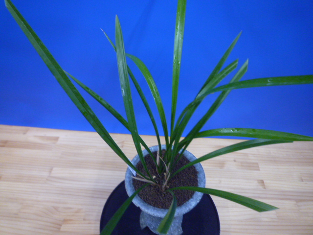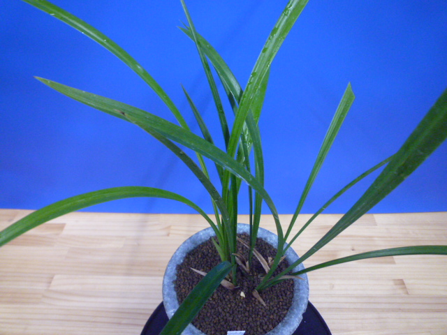 高知県払越産の葉が良いタイプで、花に期待をしてじっくり作ってきた逸品です。小さいかった株がやっとここまで育ってきて、もうそろそろ花をつけても良いサイズまで成長してきました。植え替えのタイミングでしたので、ネットにアップしてみました。根も綺麗に出来ていますので、これから新芽を出して、秋には花が見れると良いなと思っています。
