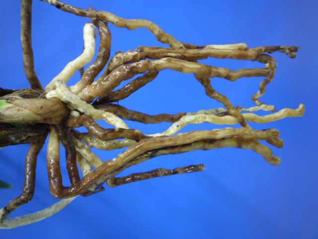 家宝系交配種で花弁が広い迫力ある花が自慢できる一品です。親である家宝も弁幅がありますが、しっかりと継承されて迫力ある花が楽しめます。舌も船底の大舌ですので、ボリュームがあり見どころ十分です。5本立の成木サイズですので、これから時期が来れば毎年のように花が見れそうです!