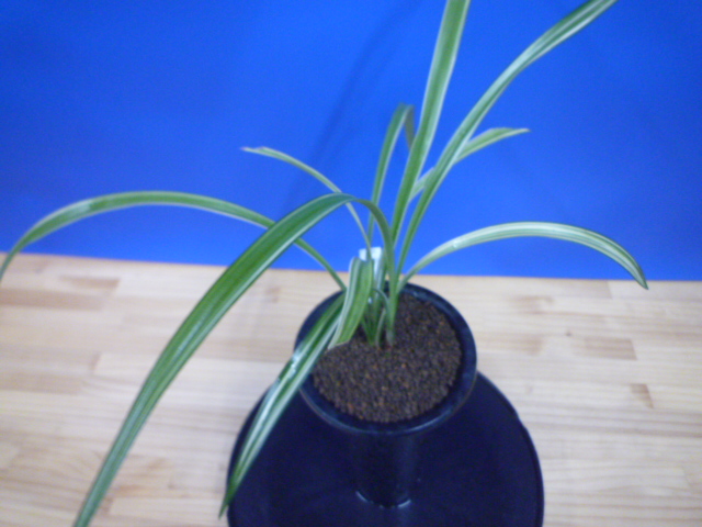 天山は、鹿児島県産で紺覆縞の柄物界の代表的な品種です。花は青に白縞をかけるすばらしい花です。展示会でもよく金賞をとる人気種で、作り易い木です。
