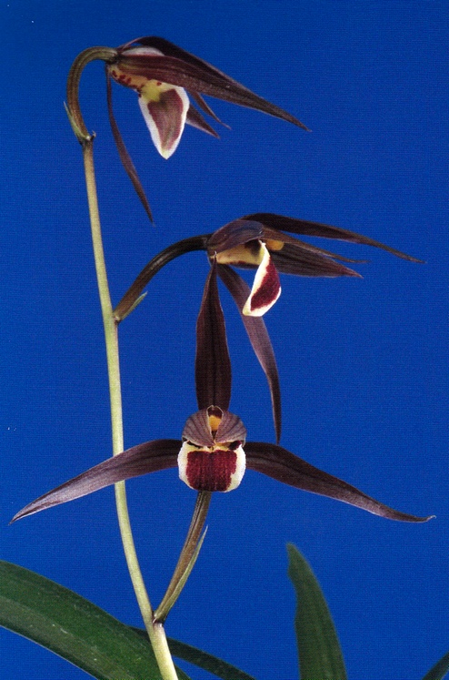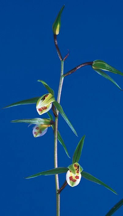 太湖は、高知県産の青の無点系です。誰が作っても、花崩れしない花持ちの良い花が葉上に抜け上がります。花間の良さ、子房の長さとどれをとっても文句のない安定感のある特上花です。各地の展示会で総合優勝を獲得してきた大変実力のある品種です。