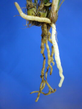 芽出し品です。新芽にも根をおろしていますので、今後の作が楽しみです。舌の大きな魅力的な花は、展示会でも大変人気です。この機会にぜひ作ってみて下さい!