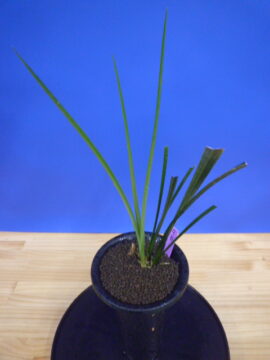 芽出し品です。綺麗な新芽が大きく伸び、根を複数下ろしています。バック木にも根がありますので作りやすそうです。初めての方からベテランまで満足できる素晴らしい名花です。作から花作り、そして開花後じっくり観賞を楽しめます。型崩れのない誰でも咲かせることのできる青の大輪花ですので、おすすめいたします!