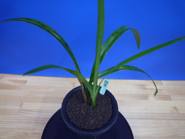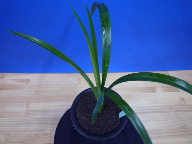 大雄は、鹿児島県産の白花素心です。花弁が厚く幅も広く、大きな舌が魅力的な白花の代名詞です。雄大な花で、見るものを魅了して現在でも多く方に愛されています。花を見ると、やっぱり大雄の花はいいと、納得できる名品です。花弁が厚い花は大変迫力があり、展示会でも良く金賞を獲る人気実力ともに充実した品種です。