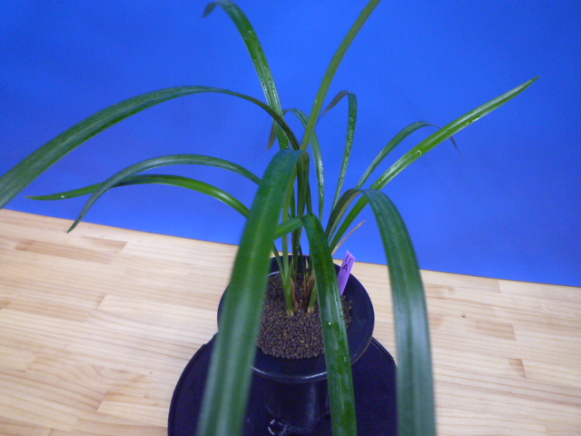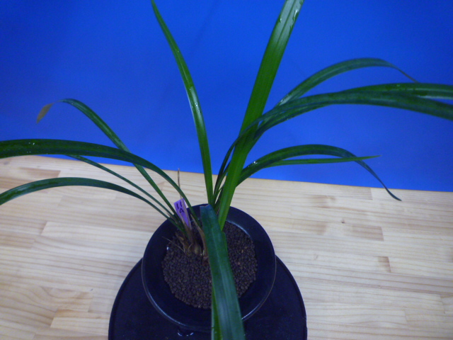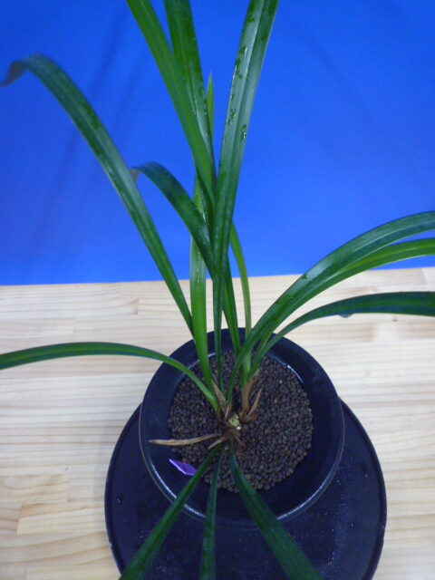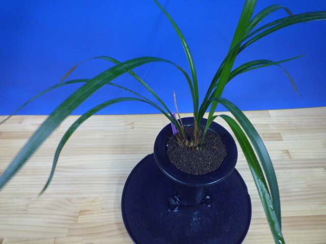柿のヘタは、高知県産の桃更紗の大輪で舌が大きな花です。柿のヘタは通称ですが、その由来は絶の大きさが柿のヘタほどあるところからきています。非常に作りこみがいのある花で、花を咲かせるたびにこの花の魅力にひきつけられます。この花は、色合い、花弁、舌、花間、花軸の伸び、子房の長さ、どれをとっても欠点がほとんどなく、名の浦産の最高品種の一つです。