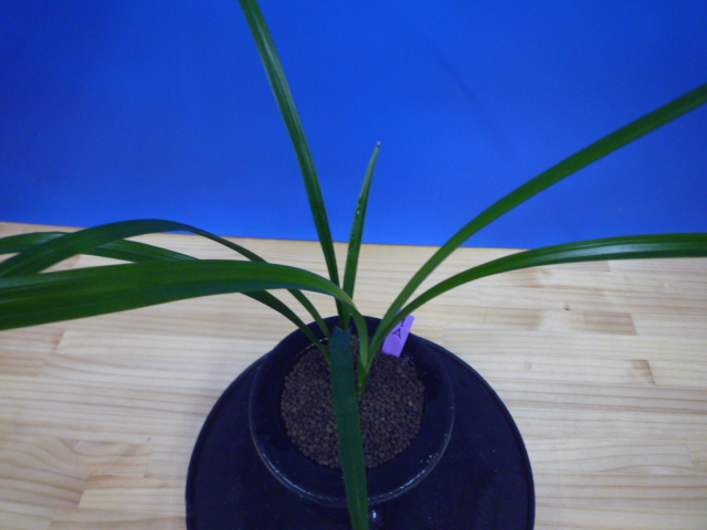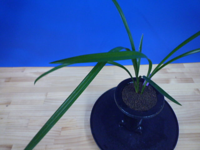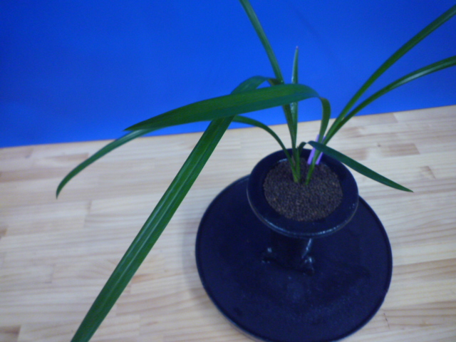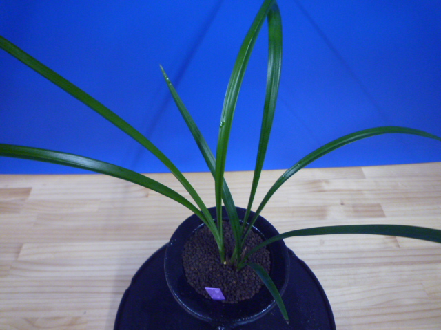 南雪は、鹿児島県産の一文字咲きに近い平肩咲きの白花素心です。花軸の伸びも良く花間も良好で、展示会でも人気があり良く金賞をとっています。昔から根強い人気がある白花の特上花です。キレのある白花一文字で、葉姿から花間でまとまります。