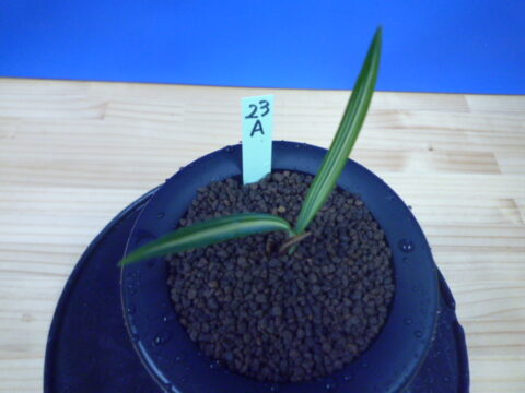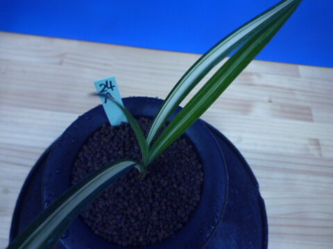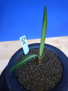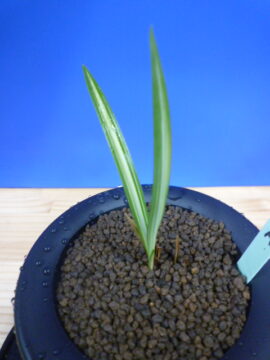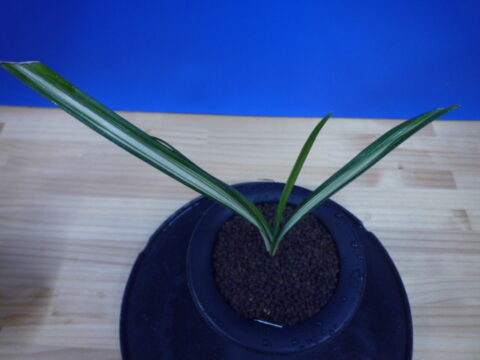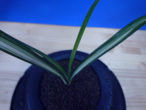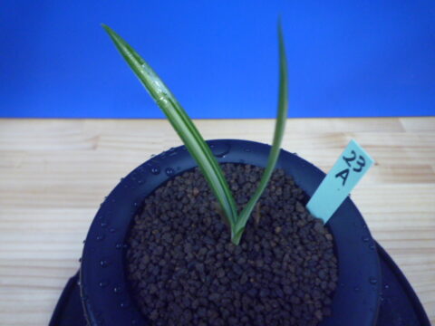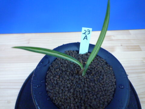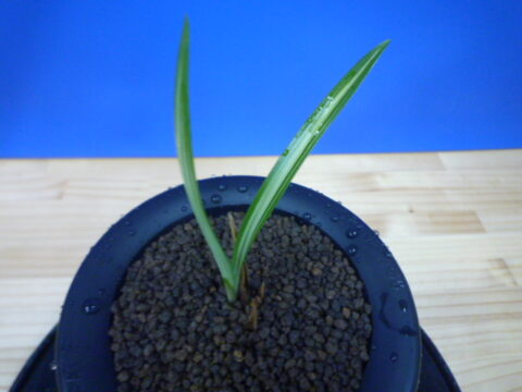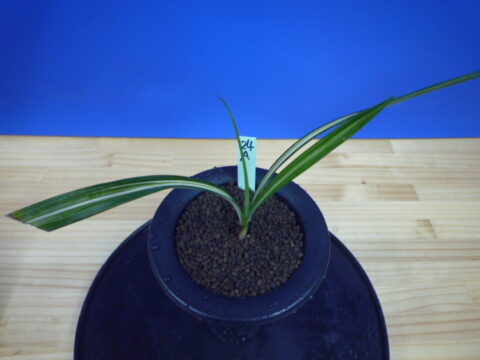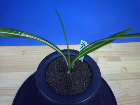 南極は、宮崎県産の垂れ葉が特徴的な縞で、花も縞花という大変魅力的な一品です。展示会でも評価が高く、良く大臣賞・金賞を獲得してきましたし、これからもこの人気は変わらないでしょう。柄物の中では比較的作り易い品種ですので、作が楽しめますのでお勧めです。