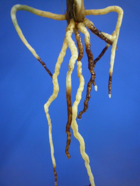 葉に付着している白や黄は予防の為に散布した殺菌剤の跡です。潅水するうちに消えますのでご安心ください。