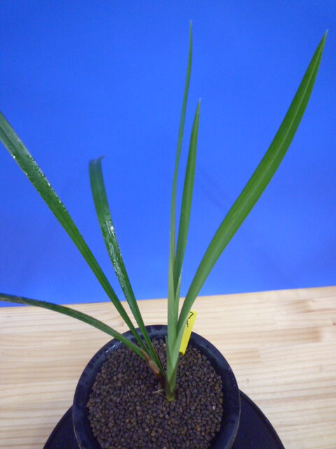 赤虎は、払越交配でキレのある花弁の一文字咲の紅大輪花です。花軸の伸びが良く葉上に花が抜け上がり、花間も良く花数も良好で全体的なバランスが秀でた一級品です。平成28年度に宮崎県蘭協会で登録された品種です。花間と軸の伸びの良さが光る一文字咲きですので、とてもおすすめです。