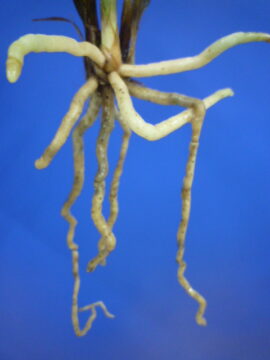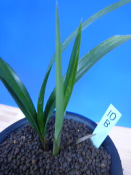 まだまだ小さいですが、綺麗な新芽が伸びていて複数の根を下ろしていますので、このまま順調に育ってくれそうです。画像撮影時の9月より順調に育っていて、10㎝前後だったのが20㎝近くになっています。画像はそのままですが、詳細は上書きしています。大変色合いの良い花で、舌が大きくとても魅力的な一品ですので、ぜひ花を咲かせてください!