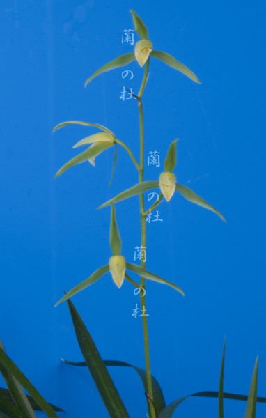 京の夢は、高知県産の三角咲きの更紗花で舌の大きな無点の花で、現代寒蘭における最高峰です。花間・花軸の伸び・花数、どれをとっても申し分ない素晴らしい花で、展示会では優勝経験が豊富で、よく大臣賞・金賞を獲得しています。新花の有望品で、これからの寒蘭界を牽引する珠玉の逸品です。