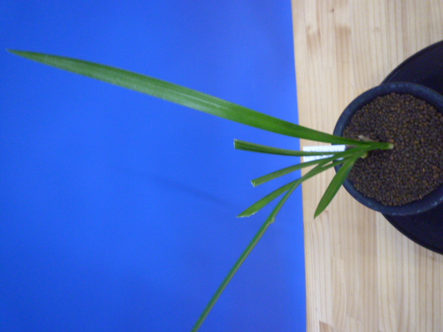 球磨富士は、熊本県産の 白花です。花軸の伸びが良く、花弁が厚く、花間も良好です。舌がしっかりしていて巻きにくく、すぐに巻いてしまうこともありません。早咲きですが花持ちが良く、長く咲かせても型崩れが少なく優秀な白花です。10月の半ば過ぎには開花する早咲きで、球磨富士が開花すると寒蘭の花時期を知らせてくれます。早く咲きますが、とても丈夫な花で2,3週間は型崩れせず長い間花を楽しめます