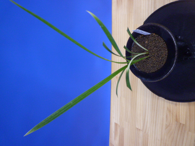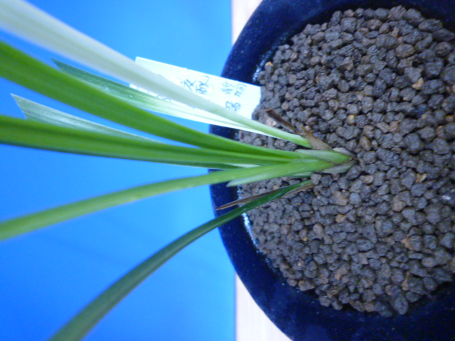 柄物の交配種から先ハケ曙の二芸品種ができました。まだ柄は安定していませんが、親木にははっきりと白い曙柄が、新木に綺麗な先ハケが出ています。これからの作できれいに柄が出していければ、葉姿と相まってとても良い柄物になっていきそうです。