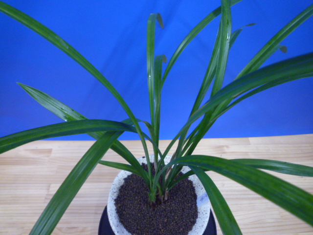 京の夢は、高知県産の三角咲きの更紗花で舌の大きな無点の花で、現代寒蘭における最高峰です。花間・花軸の伸び・花数、どれをとっても申し分ない素晴らしい花で、展示会では優勝経験が豊富で、よく大臣賞・金賞を獲得しています。これからも寒蘭界を牽引する珠玉の逸品です。
