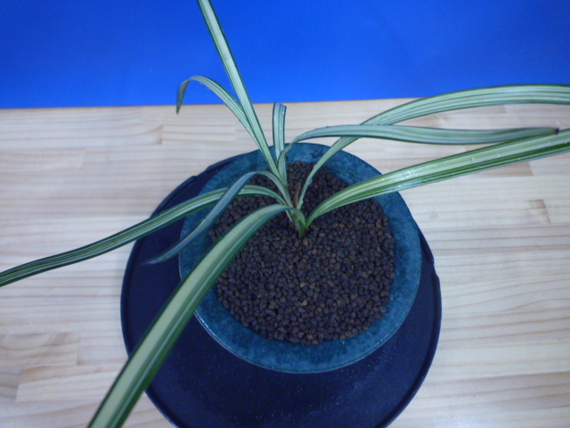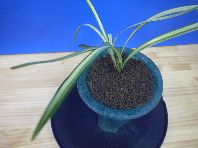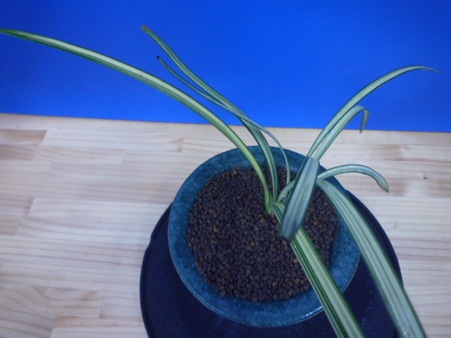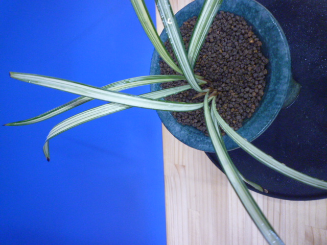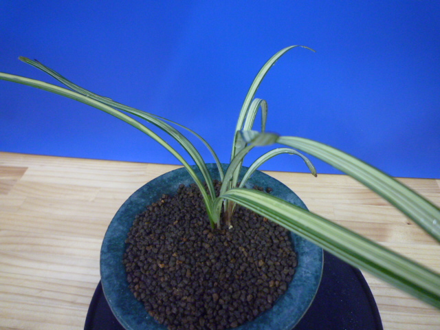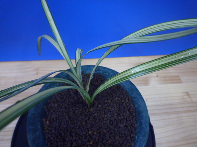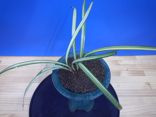 南極は、宮崎県産の垂れ葉が特徴的な縞で、花も縞花という大変魅力的な一品です。展示会でも評価が高く、良く大臣賞・金賞を獲得してきましたし、これからもこの人気は変わらないでしょう。柄物の中では比較的作り易い品種ですので、作が楽しめますのでお勧めです。