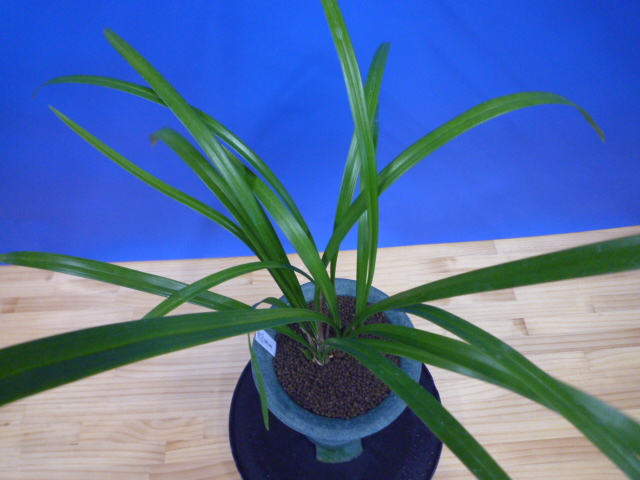 当店が宮崎県蘭協会に新登録した更紗大輪です。今までは無名の更紗大輪で出品していましたが、ここ数年花を見てきて寒蘭らしい大変良い花でしたので、美美(びび)と命名して登録しました。花型の良い更紗大輪花で、中垂れ葉から細軸がすらっと葉上に抜け上がり、大輪花でも余裕の花間をとり、花数も5輪程度で空間美があって見事です。大輪花で型崩れがなく、じっくりと花をめでることができます。