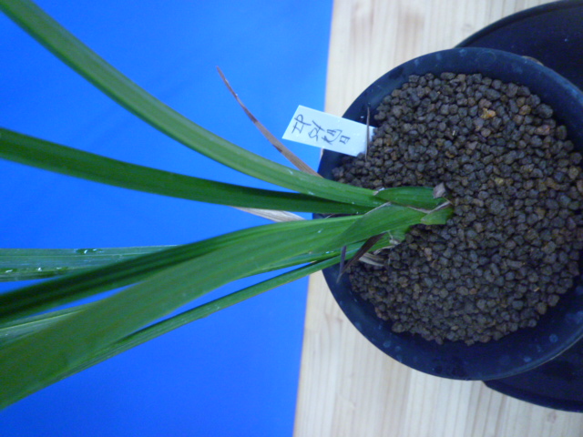 宮崎県産の旭日は、濃紅が特徴的な花弁のしっかりした型の良い丸舌です。この濃紅はとても発色が良く、深みがあってよい濃紅です。花軸の伸びは良いですが立葉ですので花が葉にかかってしまいがちですが、濃い紅と白い舌の相性が良く舌も大き目で納得の名花です。