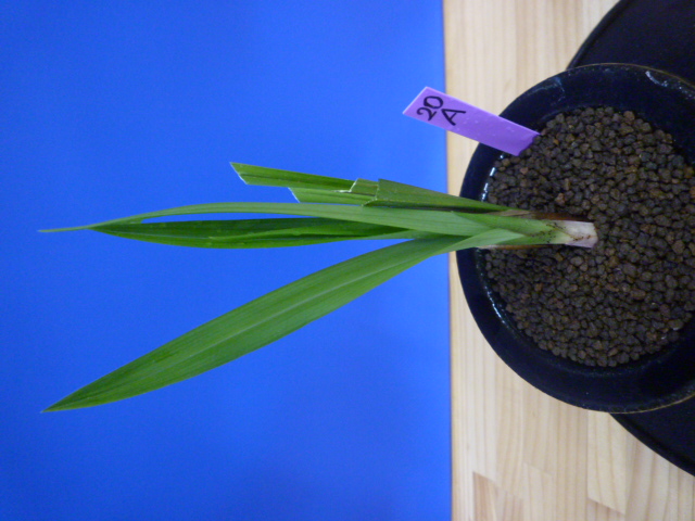 赤王は、花弁の広い黒紅で舌が丸く見ごたえのある花を咲かせます。花弁に広さがありますので、全体的にボリュームがあり、大輪花と並んでも見劣りしません。花軸の伸びが良く、葉上のしっかり花が抜け上がり、花間も良好でじっくり花が楽しめます。最近展示会に出品されることが増えてきて、注目度が高くなっている逸品です。