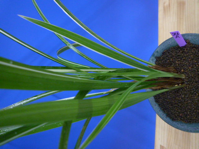源平は、高知県産の覆輪縞で、花も縞花を咲かせます。柄物ですが、しっかり作のできる品種ですので、柄の変化を楽しみながら良作が楽しめます。源平柄になったり縞になったり、多彩な柄があって柄づくりにお勧めです。