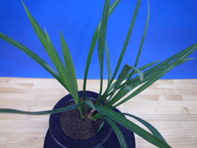 妖精は、高知県産の柄花一文字の珍しいタイプの花を咲かせます。大きな花ではありませんが、花弁の先に緑の柄をかける乳白色の花で、妖精という名の通り綺麗で魅力的な花を咲かせます。花軸も上がり、花間も良いです。葉は、チャボ葉で散り斑・斑縞をかけるタイプです。滅多にないタイプの花ですので、お勧めいたします。葉丈は大きくならないタイプで、あまり大きくならずとも花を咲かせます。