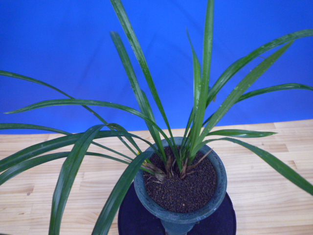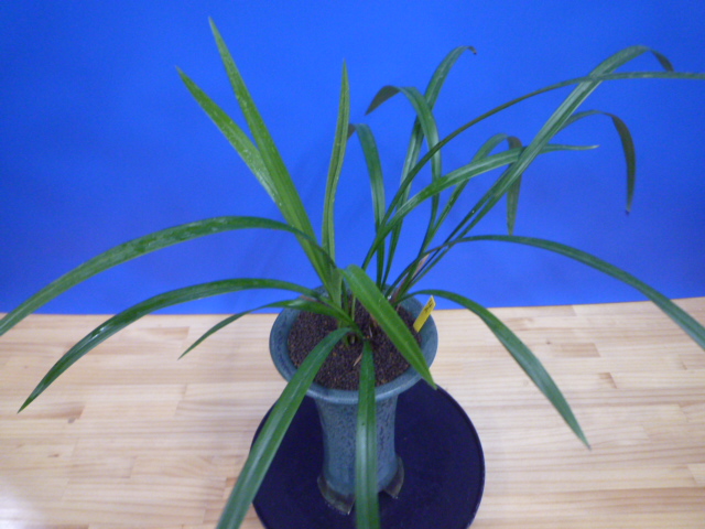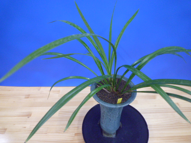 京の夢は、高知県産の三角咲きの更紗花で舌の大きな無点の花で、現代寒蘭における最高峰です。花間・花軸の伸び・花数、どれをとっても申し分ない素晴らしい花で、展示会では優勝経験が豊富で、よく大臣賞・金賞を獲得しています。これからも寒蘭界を牽引する珠玉の逸品です。