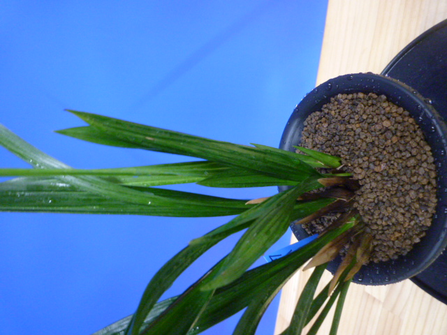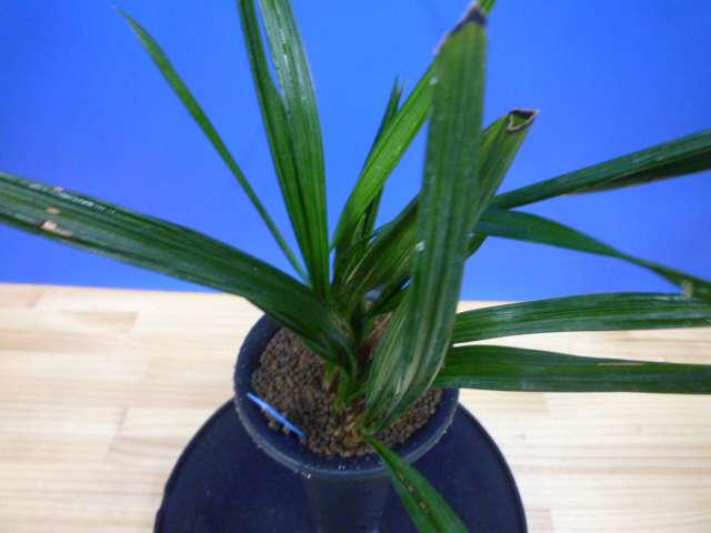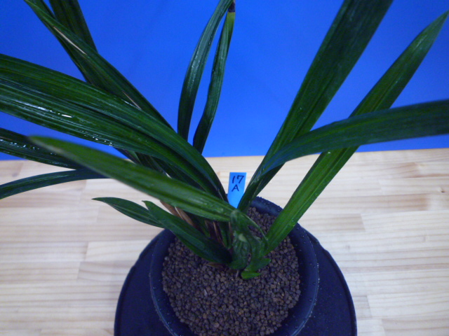 葉幅のあるガジ葉がを掛け、とても見応えがあります。葉が少し硬いので、親木に傷みも出ていますが、どんな花を咲かせるか楽しみにじっくり作ってください。根が少し茶色く出来ていますが、しっかりしているので栽培はしやすく、将来が楽しみな品種です!