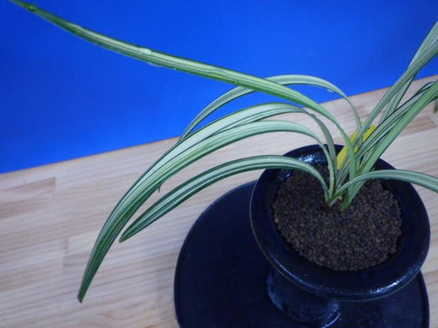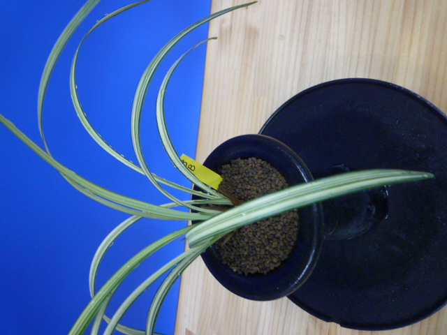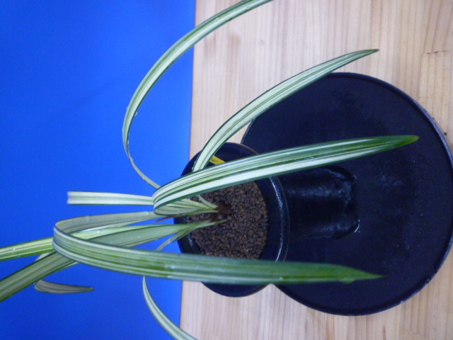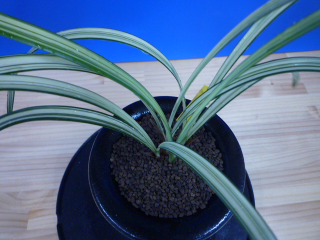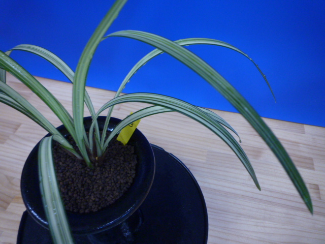 南極は、宮崎県産の垂れ葉が特徴的な縞で、花も縞花という大変魅力的な一品です。展示会でも評価が高く、良く大臣賞・金賞を獲得してきましたし、これからもこの人気は変わらないでしょう。柄物の中では比較的作り易い品種ですので、作が楽しめますのでお勧めです。