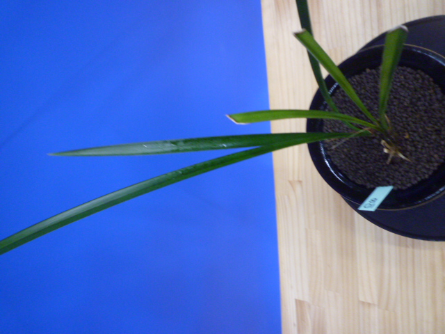 濃緑葉が艶消しで硬く葉ぶりが良く、見どころがあります。そんな葉の中から花軸がすっと伸び上がり、花全体が葉上にしっかり抜け上がります。超大輪花ですが、花数も程よく、子房が長く花間も十分で、花配りをしっかりして空間美を保つことができます。